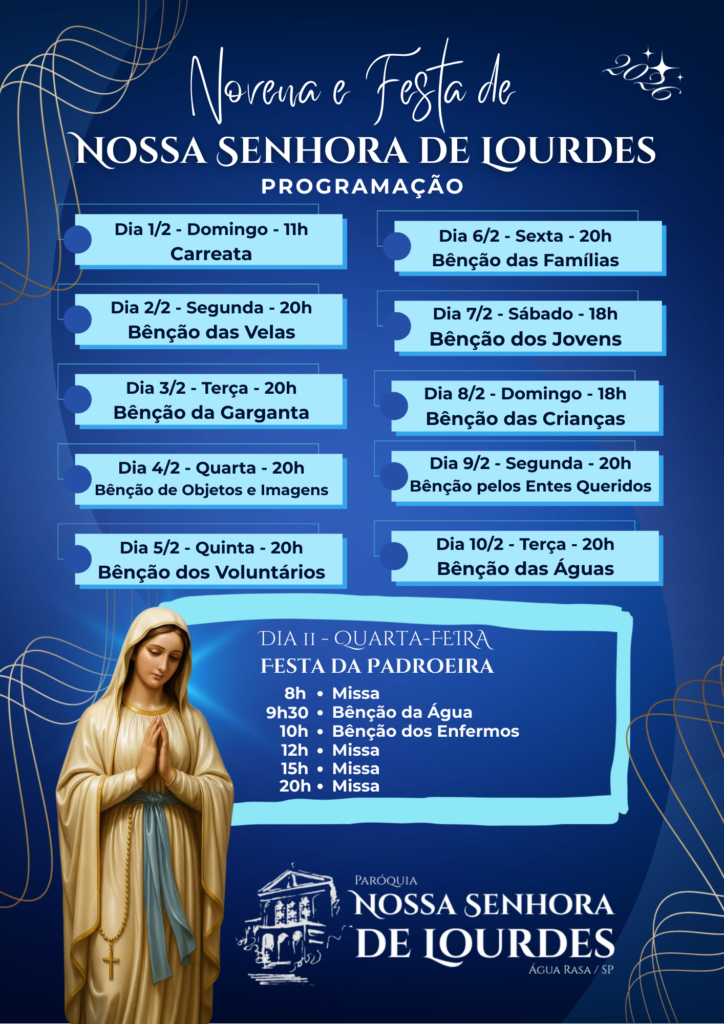 Nos 9 dias que antecedem a grande festa, será realizada uma novena com missas diárias a partir do dia 2 de fevereiro (confira a programação abaixo).